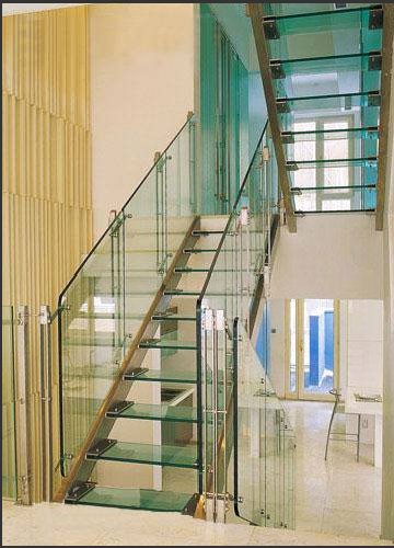 采用全玻璃和局部金属处理的楼梯设计,安装便利,外形摩登,适用于狭小的现代风格的空间。