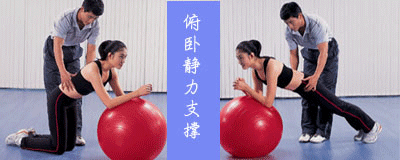 俯卧静力支撑:针对腹横肌的练习。不仅可以获得平坦的腹部,还能为脊背“减负”。动作: 双膝跪地,将健身球推到离身体稍远的位置 ,双肘支撑在球上。重复3组,每组5~10次;双膝离地,以脚尖和双肘支撑身体成一条斜线。保持支撑1~5秒