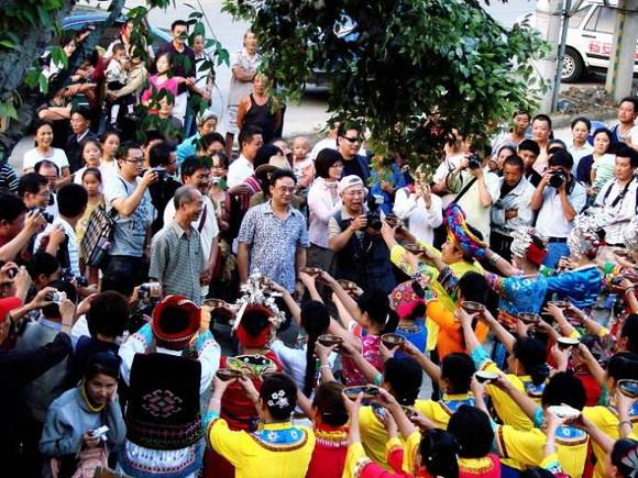 桑植白族迎亲时,喝“拦门酒”程序更复杂更有趣。双方讲礼性都很恭敬,两个礼官先生都端大碗品“迎亲酒”,最后还要杀鸡驱邪。