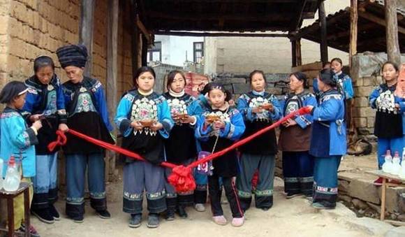 婚礼当晚,全寨青年男女要在新郎家闹“掀酒”,婚后第三天要去新娘家喝“回门酒”;回门后要召集亲朋好友喝“谢亲酒”,请做媒人喝“谢媒酒”;男女双方亲家相会要喝“老客酒”;婚后姑娘怀孕了,家里要为她操办“收心酒”。