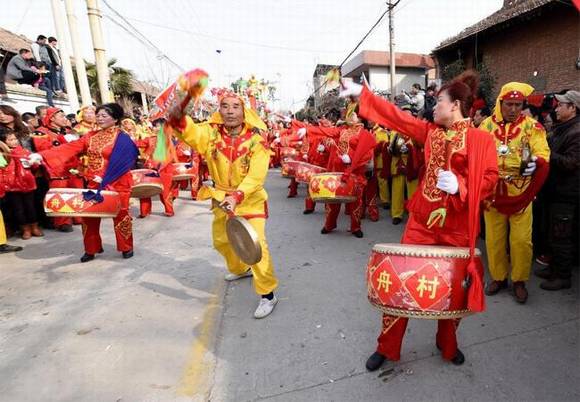 社火出行以10多“转”至20“转”不等,锣鼓开道,浩浩荡荡,热闹非凡。“落草”是社火队中之谐趣“小品”,一男扮戏曲媒旦或窈窕女郎,骑于牛背之上,一丑角牵牛,执戏曲用的马鞭。随行中,与围观人群嬉戏、打趣,将气氛推上高潮。此亦谕示社火的收尾。