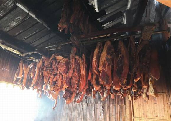 每年冬腊月,是做腊肉的季节。这一段日子里,东村西寨都不时传来猪的嚎叫声,大家都把喂养一年半载的大肥猪全部杀掉,除留下一部分肉过年时吃以外,其他全部做成腊肉,以备来年之用。