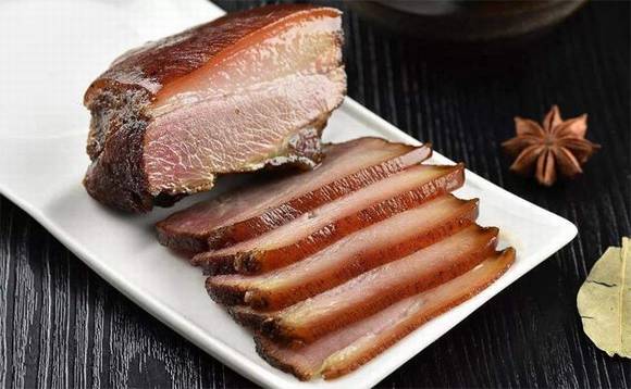 2、腊肉是选用新鲜的带皮五花肉,分割成块,用盐、黑胡椒、丁香、香叶、茴香等香料腌渍,再经风干或熏制而成,具有开胃祛寒消食等功效。
