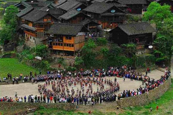 “游方”,又叫赶坡会。苗族男女青年开展社交活动的传统方式。时在农历正月初三至初五。男青年身背芦笙,女青年满身银饰,欢欢喜喜齐集“游方”坡上,一声锣鼓响过,笙歌齐奏,在姑娘们的美目流盼下,笙手们一个个使出绝技,前转后跳,跨跃腾挪,节奏轻快,舞姿雄劲。