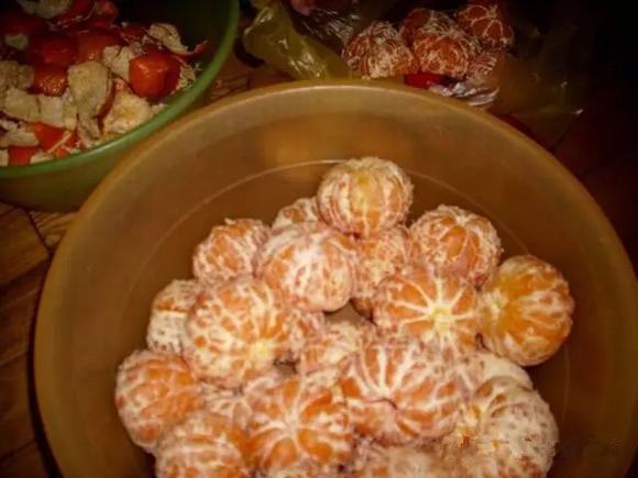 3、将橘子捏碎放在容器里,玻璃的、陶瓷等都可以!但尽量不要用铁或铝制的容器。