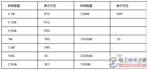这里的K是借用的词头符号。电阻的这种表示方法不常见到。字母数字混标法电阻的一些例子见表一。