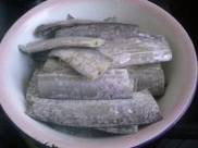 3.油开至9成热的时候,放入刀鱼,一定要用大火呀,这样刀鱼不能粘锅,要两边来回翻转,直至两面到金黄色,