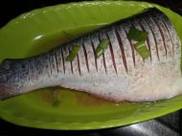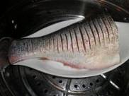 5.把蒸好的鱼从锅里拿出来撒上豉油