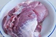整只肘子洗净,开水焯一下,去掉血水腥味;