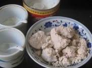 4.加盐,糖,鸡精,把酒糟颁碎了混合匀。
