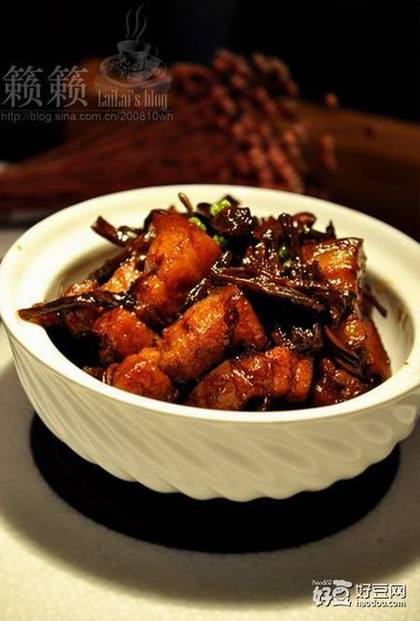 1.制作材料:五花肉1盒、干豇豆1把、大葱半根、生姜2块、八角3粒、冰糖1勺