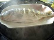 6.放蒸鱼豉油再蒸5分钟关火虚蒸5分钟