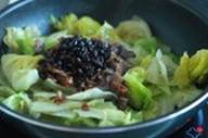 锅内放入适量的油,待油热,倒入生菜,翻炒几下