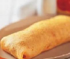 3.待蛋皮半凝固时,放入作法1炒好的饭放在近身体的一侧蛋皮上,再将前方的蛋皮覆盖上来,稍作整形即可盛盘。
